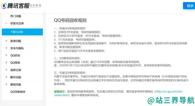 QQ官网帮助中心里写明了回收规则,分为普通号码,靓号,天翼号三类。其中普通号规则如下: